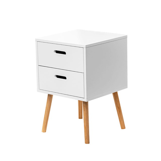 Simple Generous Wooden White Bedside Table With Solid Wood Legs